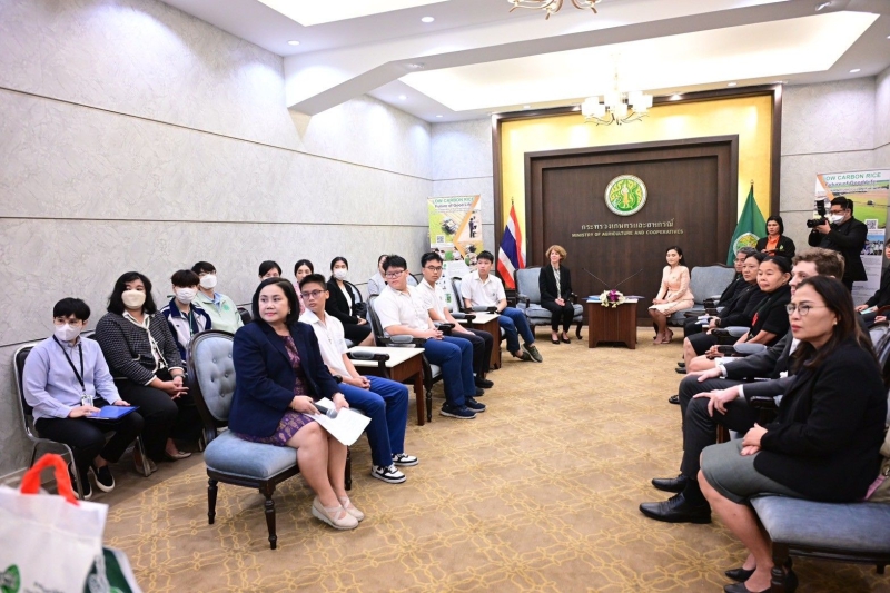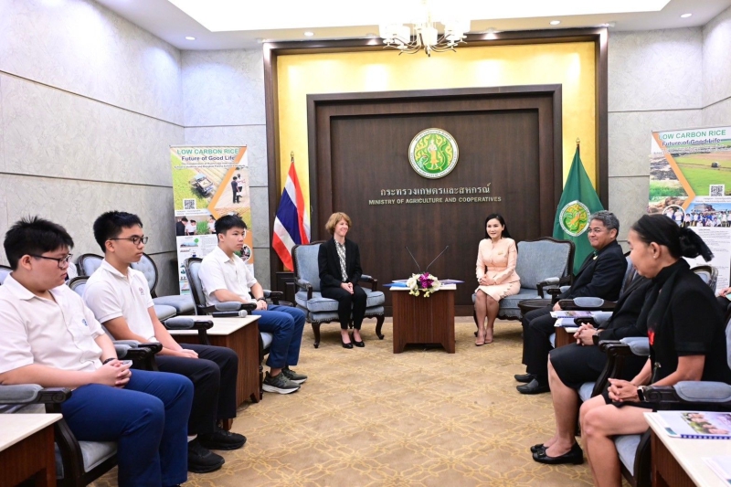 ศ.ดร.นฤมล ภิญโญสินวัฒน์ รัฐมนตรีว่าการกระทรวงเกษตรและสหกรณ์ เป็นประธานรับฟังการนำเสนอผลงานโครงการ Future of good Life จากนักเรียนโรงเรียนร่วมฤดีวิเทศศึกษา และโรงเรียนนานาชาติบางกอกพัฒนา โดยมี นายอภัย สุทธิสังข์ รองปลัดกระทรวงเกษตรและสหกรณ์ นางสาวภัทราภรณ์ โสเจยยะ รองปลัดกระทรวงเกษตรและสหกรณ์ ดร. นานา คึนเคล ผู้อำนวยการและผู้ประสานงาน กลุ่มเกษตรและความปลอดภัยด้านอาหาร องค์กรความร่วมมือระหว่างประเทศของเยอรมัน (Dr. Nana Kuenkel : Cluster Director Coordinator – Agriculture and Food Cluster GIZ) นางอมราพร ชีพสมุทร์ ผู้อำนวยการกองนโยบายเทคโนโลยีเพื่อการเกษตรและเกษตรกรรมยั่งยืน และผู้แทนกรมการข้าว เข้าร่วม ณ ห้องประชุมกระทรวงเกษตรและสหกรณ์ 112