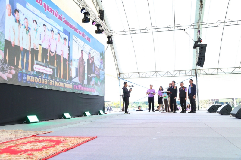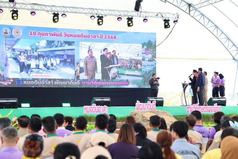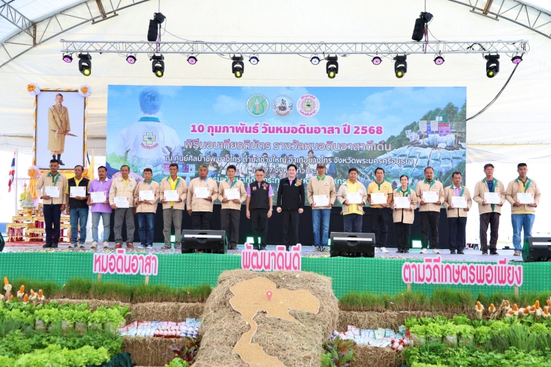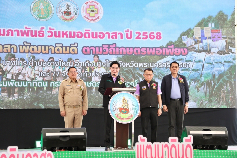 นายอัครา พรหมเผ่า รัฐมนตรีช่วยว่าการกระทรวงเกษตรและสหกรณ์ เป็นประธานในพิธีเปิดงาน “วันหมอดินอาสา กรมพัฒนาที่ดิน ปี 2568” ภายใต้หัวข้อ “หมอดินอาสา พัฒนาดินดี ตามวิถีเกษตรพอเพียง” โดยมี นางอัญชลี สุวจิตตานนท์ รองปลัดกระทรวงเกษตรและสหกรณ์ ดร.ทวีศักดิ์ ธนเดโชพล อธิบดีกรมพัฒนาที่ดิน นายเกียรติปราโมทย์ ฉายศรี รองผู้ว่าราชการจังหวัดพระนครศรีอยุธยา ผู้บริหารกระทรวงเกษตรและสหกรณ์ ข้าราชการ เจ้าหน้าที่กรมพัฒนาที่ดินและหมอดินอาสา เข้าร่วม ณ ศูนย์ศิลปาชีพ บางไทร ตำบลช้างใหญ่ อำเภอบางไทร จังหวัดพระนครศรีอยุธยา และถ่ายทอดสดพร้อมกันผ่านระบบ Video conference application zoom ไปยังสถานีพัฒนาที่ดินตัวแทน 5 ภาค และสถานีพัฒนาที่ดินจังหวัดทั่วประเทศ และถ่ายทอดสด (Live) ผ่านเพจเฟซบุ๊กกรมพัฒนาที่ดิน ซึ่งการจัดงานดังกล่าวมีวัตถุประสงค์เพื่อเป็นการเชิดชูเกียรติแก่หมอดินอาสา อีกทั้งยังเป็นการเชื่อมความสัมพันธ์ระหว่างหมอดินอาสาและเจ้าหน้าที่กรมพัฒนาที่ดิน รวมถึงเป็นการสร้างขวัญกำลังใจให้หมอดินอาสาในการช่วยเหลือดูแลซึ่งกันและกัน รวมทั้งสร้างความเข้มแข็งให้กับเครือข่ายหมอดินอาสา โดยกิจกรรมภายในงานมีการจัดนิทรรศการเกี่ยวกับการพัฒนาดินและการส่งเสริมวิถีเกษตรพอเพียง การแสดงสินค้าของหมอดินอาสาที่โดดเด่น เน้นการสร้างแบรนสินค้าเกษตรที่มีคุณภาพ การมอบรางวัลให้แก่หมอดินอาสาที่มีผลงานดีเด่น และกิจกรรมอื่น ๆ อีกมากมาย