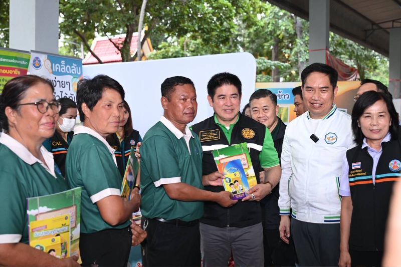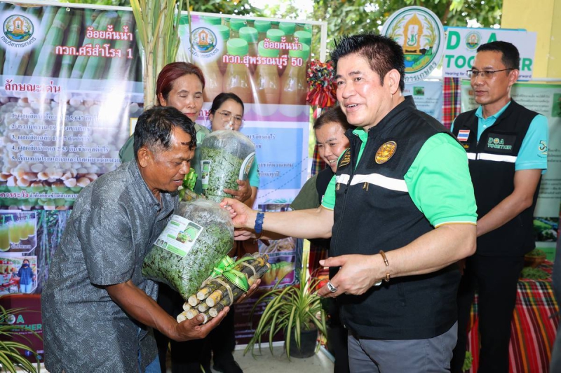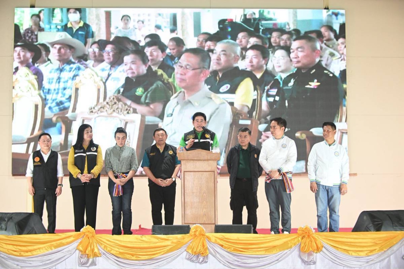 “ในวันนี้ถือเป็นการประชุมหัวหน้าส่วนราชการของกระทรวงเกษตรฯ นอกสถานที่ เพื่อรับฟังปัญหาด้านการเกษตรและหารือแนวทางแก้ไขร่วมกันระหว่างหน่วยงานภาครัฐ ภาคเอกชน และเกษตรกร โดยจะนำข้อสรุปที่ได้จากการประชุมดังกล่าวไปขับเคลื่อนแนวทางแก้ไขปัญหาความเดือดร้อนของเกษตรกรในระยะเร่งด่วน โดยได้สั่งการหน่วยงานที่เกี่ยวข้องรับเรื่องไปดำเนินการเรียบร้อยแล้ว ส่วนการแก้ปัญหานมล้นตลาดและราคาตกต่ำ เตรียมตรวจสอบทั้งระบบตั้งแต่ต้นน้ำจนถึงปลายน้ำ อาทิ ปริมาณนมที่ผลิตได้ในประเทศสอดคล้องกับความเป็นจริงหรือไม่ มีการบริหารจัดการการนำเข้าอย่างไร โดยจะนำข้อมูลเหล่านี้มาปรับโครงสร้างนมทั้งระบบ โดยเฉพาะโครงการอาหารเสริม (นม) โรงเรียน ที่จะบูรณาการร่วมกับกระทรวงศึกษาธิการ เคลียร์สต็อกนมคงค้างให้หมดไปใน 6 เดือน โดยเล็งเพิ่มวันให้เด็กนักเรียนได้ดื่มนมมากขึ้น รวมทั้งให้เป็นไปตามวัตถุประสงค์ของการก่อตั้งองค์การส่งเสริมกิจการโคนมแห่งประเทศไทย (อ.ส.ค.) ที่ต้องการส่งเสริมกิจการโคนมในประเทศไทยเพื่อเกษตรกรผู้เลี้ยงโคนมมีรายได้อย่างยั่งยืน นอกจากนี้ การแก้ปัญหาราคาสินค้าเกษตรทั้งด้านพืช ประมง และปศุสัตว์ ได้เตรียมหารือร่วมกับภาคเอกชน และภาคอุตสาหกรรมต่อไป ขณะเดียวกัน อาสาสมัครเกษตร (อกม.) ต้องได้รับค่าตอบแทนที่เหมาะสม เพราะเป็นตัวแทนของหน่วยงานกระทรวงเกษตรและสหกรณ์ระดับหมู่บ้านที่เชื่อมโยงภาครัฐและเกษตรกร เพื่อแก้ไขปัญหาด้านการเกษตรในระดับหมู่บ้าน ซึ่งจะนำเข้า ครม. และผลักดันให้บรรจุในปีงบประมาณ พ.ศ. 2570 ให้ได้" ร้อยเอก ธรรมนัส กล่าว