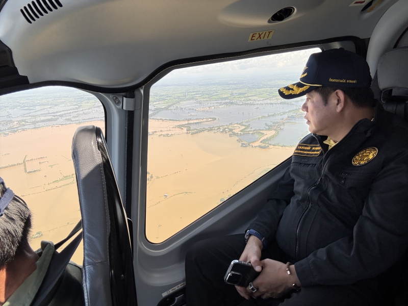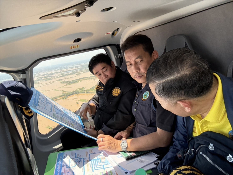 ร้อยเอก ธรรมนัส พรหมเผ่า รองนายกรัฐมนตรี และรัฐมนตรีว่าการกระทรวงเกษตรและสหกรณ์ พร้อมด้วย ศ.ดร.นฤมล ภิญโญสินวัฒน์ รัฐมนตรีว่าการกระทรวงศึกษาธิการ นายวิณะโรจน์ ทรัพย์ส่งสุข ปลัดกระทรวงเกษตรและสหกรณ์ นายสุริยพล นุชอนงค์ อธิบดีกรมชลประทาน บินสำรวจสถานการณ์น้ำในแม่น้ำยม อำเภอกงไกรลาศ จังหวัดสุโขทัย เพื่อติดตามสถานการณ์อุทกภัยและแนวทางบริหารจัดการน้ำในพื้นที่