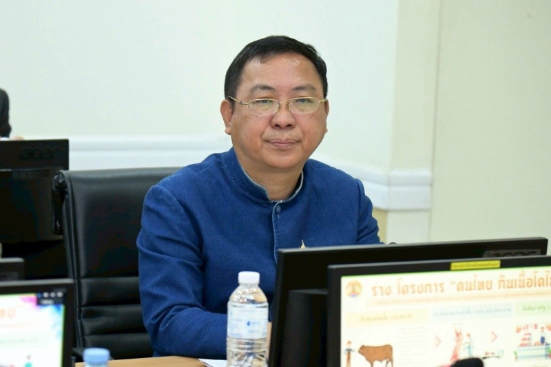 นายอามินทร์ มะยูโซ๊ะ รัฐมนตรีช่วยว่าการกระทรวงเกษตรและสหกรณ์ เป็นประธานการประชุม (ร่าง) โครงการ “คนไทย กินเนื้อโคไทย” พร้อมรับฟังแนวทางแก้ไขปัญหาโคเนื้อไทยราคาตกต่ำ โดยการรับซื้อโคเนื้อในราคาที่เหมาะสม เข้าเชือดในโรงฆ่าสัตว์ที่มีมาตรฐาน และกระจายสู่ตลาดสมัยใหม่ พร้อมรณรงค์ส่งเสริมการบริโภคเพื่อลดการนำเข้า โดยมี นายสัตวแพทย์สมชวน รัตนมังคลานนท์ อธิบดีกรมปศุสัตว์ ผู้บริหารในสังกัดกระทรวงเกษตรและสหกรณ์ และหน่วยงานที่เกี่ยวข้อง เข้าร่วม ณ กรมปศุสัตว์ กรุงเทพฯ โดยที่ประชุมได้นำเสนอข้อมูล (ร่าง) โครงการ “คนไทย กินเนื้อโคไทย” เพื่อขับเคลื่อนราคาโคเนื้อช่วยเหลือเกษตรกรและป้องกันราคาโคเนื้อต่างประเทศเข้ามาแย่งราคาตลาดในประเทศไทย ซึ่งโครงการดังกล่าวได้วางเป้าหมายโคเนื้อ 100,000 ตัว โดยกรมปศุสัตว์ มีขั้นตอนการดำเนินการ ดังนี้ 1) ต้องมีหลักฐานการขึ้นทะเบียนการเลี้ยงโคกับกรมปศุสัตว์ และมีเครื่องหมายและบัตรประจำตัวสัตว์ตามที่โครงการกำหนดหรือหลักฐานอื่น ๆ ตามระเบียบข้อกำหนดที่กรมปศุสัตว์บังคับใช้ 2) ผู้ประกอบการโรงฆ่าสัตว์ต้องได้รับรองมาตรฐาน ดำเนินการเชือด ตัดแต่ง และมีบรรจุภัณฑ์ที่โครงการกำหนดและสามารถตรวจสอบย้อนกลับได้ พร้อมทั้งต้องแนบหลักฐานใบรับสินค้าจากสถานที่จำหน่ายหรือหลักฐานอื่น ๆ ตามระเบียบข้อกำหนดที่กรมปศุสัตว์บังคับใช้ 3) สถานที่จำหน่ายรับซื้อเนื้อโคในราคา 185 บาท/กิโลกรัม โดยจำหน่ายให้ผู้บริโภคราคาไม่เกิน 200 บาท/กิโลกรัม และ 4) ผู้บริโภคสามารถเลือกซื้อเนื้อโคในราคาประหยัด และส่งเสริมการบริโภคเนื้อโคไทยที่มีคุณภาพ สะอาด ปลอดภัย ได้มาตรฐานรับรอง ในราคาไม่เกิน 200 บาท/กิโลกรัม ทั้งนี้มาตรการและแนวทางดังกล่าวจะนำเสนอคณะกรรมการที่เกี่ยวข้องเพื่อขอความเห็นชอบต่อไป