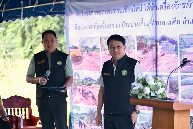 รัฐมนตรีช่วยว่าการกระทรวงเกษตรและสหกรณ์ เปิดเผยว่า สืบเนื่องจากอิทธิพลพายุโซนร้อนคาจิกิในช่วงที่ผ่านมา ส่งผลให้อำเภอแม่แจ่มประสบปัญหาน้ำป่าไหลหลากและดินโคลนถล่ม บ้านเรือนและพื้นที่เกษตรกรรมได้รับความเสียหาย จึงได้มอบหมายให้กรมชลประทานเตรียมแผนงานซ่อมแซมอาคารท่อลอดพร้อมอาคารป้องกันตลิ่งบ้านปางอุ๋ง และซ่อมแซมระบบส่งน้ำพร้อมขุดลอกตะกอนฝายปางเกี๊ยะอย่างเร่งด่วนใน 3 เดือน เพื่อให้พนังและคันดินมีความแข็งแรงมั่นคงสามารถรองรับปริมาณน้ำได้ ประชาชนมีน้ำเพียงพอสำหรับอุปโภค-บริโภค รวมถึงสามารถทำการเกษตรได้ดังเดิม และมอบหมายกรมพัฒนาที่ดินบูรณาการร่วมกับกรมทรัพยากรน้ำบาดาล จัดทำระบบท่อส่งน้ำให้ทั่วถึงประชาชนชาวบ้านปางเกี๊ยะ ให้มีน้ำใช้ทำการเกษตรอย่างทั่วถึง รวมถึงให้วางแผนจัดทำโครงการป้องกันการชะล้างพังทลายของดินและฟื้นฟูพื้นที่เกษตรกรรมด้วยระบบอนุรักษ์ดินและน้ำ เพื่อป้องกันเหตุดินถล่มในระยะยาว ด้วยการทำฝายชะลอน้ำ ปรับปรุงบำรุงดินเตรียมพร้อมการทำเกษตร และปลูกหญ้าแฝกเป็นปราการกั้นเศษดินลงสู่บ้านเรือนและพื้นที่เกษตรกรรม