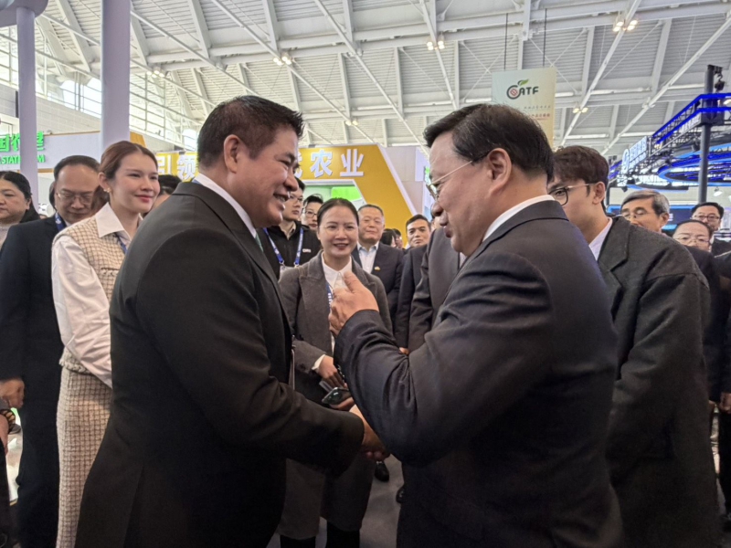 จากนั้น รองนายกรัฐมนตรีได้เปิดนิทรรศการ Thai Pavilion ซึ่งองค์การตลาดเพื่อเกษตรกร (อ.ต.ก.) ได้นำผลไม้ไทยคุณภาพ เช่น ทุเรียน มะม่วงน้ำดอกไม้ มะพร้าว ขนุน ลองกอง ลำไย และส้มโอ รวมถึงสินค้าเกษตรแปรรูป ผลไม้อบแห้ง และข้าวสาร ให้ผู้บริโภคชาวจีนและต่างชาติได้ลิ้มลอง พร้อมจัดกิจกรรม Business Matching เพื่อเปิดเวทีให้ผู้ประกอบการและเกษตรกรไทยได้เจรจาธุรกิจกับผู้ซื้อโดยตรง ทั้งในรูปแบบ B2B และ B2C การเข้าร่วมงานครั้งนี้ถือเป็นอีกก้าวสำคัญในการผลักดันสินค้าเกษตรไทยสู่ตลาดโลก ตอกย้ำภาพลักษณ์ สินค้าเกษตรไทยคุณภาพระดับโลกและสร้างความเชื่อมั่นให้แก่คู่ค้าต่างประเทศอย่างต่อเนื่อง