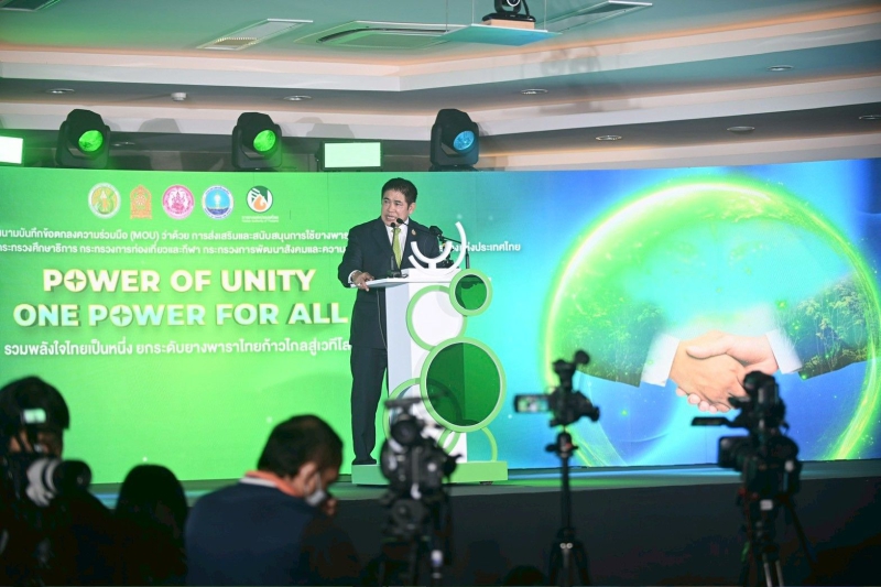 กระทรวงเกษตรและสหกรณ์ มีความมุ่งมั่นอย่างยิ่งในการสนับสนุนนโยบายรัฐบาลที่ให้ความสำคัญกับการส่งเสริมใช้ยางพาราในหน่วยงานภาครัฐ เพื่อเพิ่มปริมาณการใช้ยางพาราภายในประเทศ การสร้างเสถียรภาพราคายางพารา และการยกระดับคุณภาพชีวิตของเกษตรกรชาวสวนยางและประชาชน ผ่านการใช้ประโยชน์จากผลิตภัณฑ์ยางพาราในรูปแบบต่าง ๆ