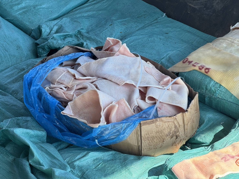 ฉก.พญานาคราช จับหนังหมูเถื่อน ริมชายแดนแม่น้ำโขง มูลค่ากว่า 112,000 บาท