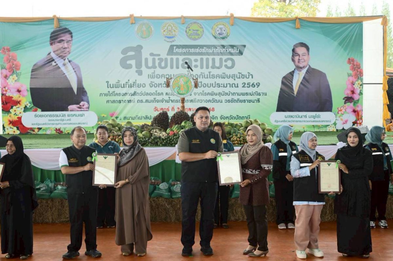 “รมช.อามินทร์” ลุยปัตตานี เปิดโครงการทำหมันสุนัข–แมว คุมโรคพิษสุนัขบ้า สร้างพื้นที่ปลอดภัย คุมประชากรสัตว์ ลดปัญหาสัตว์จรจัด ป้องกันการแพร่ระบาดโรคร้ายแรง