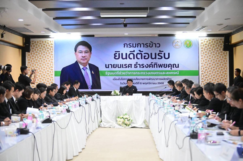 5) วิจัยพัฒนาเทคโนโลยีข้าว โดยใช้เทคโนโลยีชีวภาพและ Speed Breeding ลดเวลาพัฒนาพันธุ์เหลือ 3–5 ปี พร้อมผลักดันผลิตภัณฑ์แปรรูปเพิ่มมูลค่า เช่น อาหารเสริม เครื่องสำอาง และสุราชุมชน 6) เพิ่มประสิทธิภาพการผลิต ลดต้นทุน 10% เพิ่มผลผลิต 20% สนับสนุนเครื่องจักรให้ศูนย์ข้าวชุมชน 300 แห่ง 7) ปรับพื้นที่ปลูกข้าวไม่เหมาะสม ร่วมกับกรมพัฒนาที่ดิน ส่งเสริมให้ปรับเปลี่ยนไปปลูกพืชที่มีผลตอบแทนสูงกว่า และ 8) ยกระดับมาตรฐานตรวจสอบ รับรองคุณภาพข้าว เพิ่มความเข้มแข็งระบบตรวจสอบและมาตรฐานผลิตภัณฑ์ข้าวให้เป็นมาตรฐานสากล