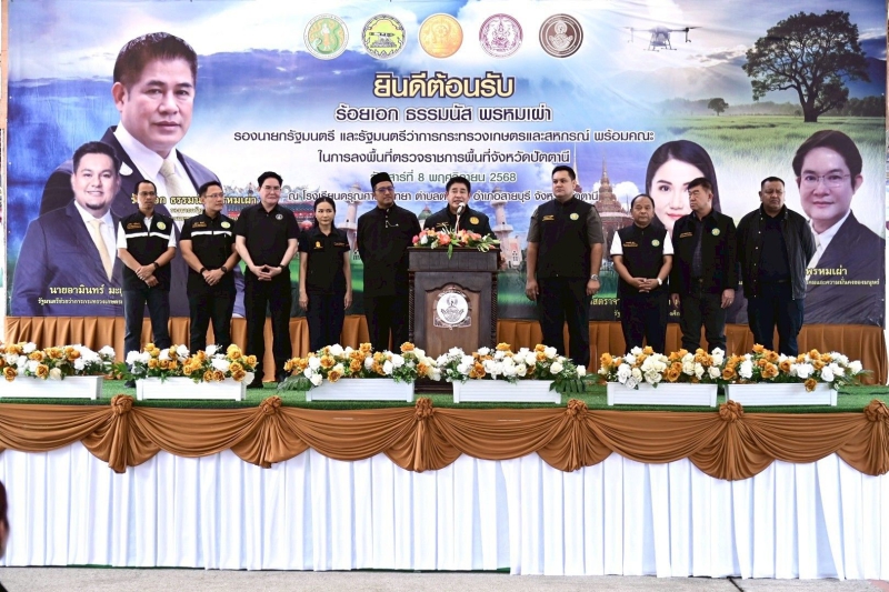 ร้อยเอก ธรรมนัส พรหมเผ่า รองนายกรัฐมนตรี และรัฐมนตรีว่าการกระทรวงเกษตรและสหกรณ์ ลงพื้นที่ตรวจราชการและรับฟังปัญหาความเดือดร้อนของประชาชน พร้อมมอบนโยบายและแนวทางปฏิบัติงานเพื่อขับเคลื่อนการพัฒนาภาคการเกษตรในพื้นที่ โดยมี ศ.ดร.นฤมล ภิญโญสินวัฒน์ รัฐมนตรีว่าการกระทรวงศึกษาธิการ นายอัครา พรหมเผ่า รัฐมนตรีว่าการกระทรวงการพัฒนาสังคมและความมั่นคงของมนุษย์ นายอรรถกร ศิริลัทธยากร รัฐมนตรีว่าการกระทรวงการท่องเที่ยวและกีฬา นายอามินทร์ มะยูโซ๊ะ รัฐมนตรีช่วยว่าการกระทรวงเกษตรและสหกรณ์ ผู้บริหารกระทรวงเกษตรและสหกรณ์ และหน่วยงานที่เกี่ยวข้อง เข้าร่วม ณ โรงเรียนดรุณศาสน์วิทยา ต.ตะลุบัน อ.สายบุรี จ.ปัตตานี