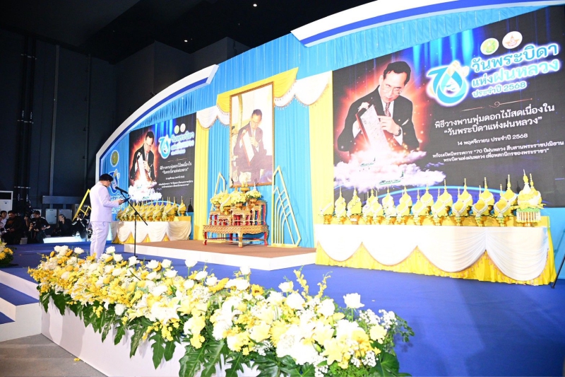 นายนเรศ ธำรงค์ทิพยคุณ รัฐมนตรีช่วยว่าการกระทรวงเกษตรและสหกรณ์ เป็นประธานพิธีวางพานพุ่มดอกไม้สดเนื่องใน “วันพระบิดาแห่งฝนหลวง ประจำปี 2568” เพื่อรำลึกถึงพระมหากรุณาธิคุณอันหาที่สุดมิได้ของ พระบาทสมเด็จพระบรมชนกาธิเบศร มหาภูมิพลอดุลยเดชมหาราช บรมนาถบพิตร และกล่าวรำลึกในพระมหากรุณาธิคุณ ที่พระองค์ทรงอุทิศพระวรกายและพระปรีชาสามารถในการคิดหาวิธีในการบังคับเมฆให้เกิดเป็นเม็ดฝน ที่ก่อให้เกิดประโยชน์ต่อการเกษตรและการบริหารจัดการทรัพยากรน้ำในชั้นบรรยากาศของประเทศมาตลอดระยะเวลา 70 ปีที่ผ่านมา พร้อมมอบรางวัลอาสาสมัครฝนหลวงดีเด่น ประจำปี 2568 จำนวน 5 รางวัล เพื่อเชิดชูบุคคลผู้มีส่วนสำคัญในการสนับสนุนภารกิจปฏิบัติการฝนหลวงทั่วประเทศ และเป็นการสร้างแรงบันดาลใจให้กับคนรุ่นใหม่ที่มีความสนใจเข้ามามีส่วนร่วมในการสืบสานพระราชปณิธานแห่งพระบิดาแห่งฝนหลวง พร้อมทั้งเปิดนิทรรศการ “70 ปีฝนหลวง สืบสานพระราชปณิธานพระบิดาแห่งฝนหลวง เพื่อพสกนิกรของพระราชา” โดยมี นายกฤษ อุตตมะเวทิน รองปลัดกระทรวงเกษตรและสหกรณ์ นายราเชน ศิลปะรายะ อธิบดีกรมฝนหลวงและการบินเกษตร พร้อมด้วยคณะผู้บริหาร หัวหน้าส่วนราชการ ข้าราชการ เจ้าหน้าที่กระทรวงเกษตรและสหกรณ์ ผู้แทนเหล่าทัพ ผู้แทนส่วนราชการต่าง ๆ รวมทั้งอาสาสมัครฝนหลวง เข้าร่วมในพิธี ณ Jewel Hall ชั้น 5 ศูนย์การค้าสยามพารากอน กรุงเทพมหานคร