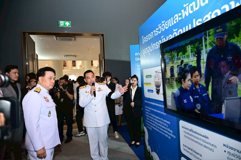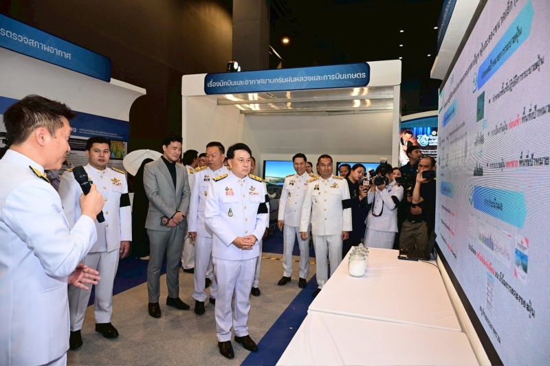 สำหรับนิทรรศการ “70 ปีฝนหลวง สืบสานพระราชปณิธานพระบิดาแห่งฝนหลวง เพื่อพสกนิกรของพระราชา” เป็นการแสดงเรื่องราวพระอัจฉริยภาพของในหลวงรัชกาลที่ 9 ตลอดจนพัฒนาการของเทคโนโลยีฝนหลวงที่กรมฝนหลวงและการบินเกษตร ได้พัฒนาต่อยอดอย่างต่อเนื่อง สร้างความมั่นคงทางน้ำให้กับประเทศ และมีการจัดแสดงนิทรรศการภารกิจของกรมฝนหลวงและการบินเกษตรในรูปแบบเครื่องบินจำลอง เพื่อให้ประชาชนได้สัมผัสประสบการณ์เสมือนขึ้นบินไปปฏิบัติภารกิจจริง ประกอบด้วย 4 โซน ได้แก่ 1) ภารกิจฝนหลวงและการดัดแปรสภาพอากาศ นำเสนอการทำฝนหลวงเพื่อบรรเทาภัยแล้งเติมน้ำต้นทุนให้กับเขื่อน อ่างเก็บน้ำ บรรเทาปัญหาหมอกควัน และฝุ่นละอองขนาดเล็ก PM2.5 2) การตรวจสภาพอากาศฝนหลวง แสดงเครื่องมือเรดาร์และระบบตรวจวัดแบบเรียลไทม์ 3) นักบินและอากาศยานของกรมฝนหลวงฯ เปิดให้ทดลองขับเครื่องบินเสมือนจริงผ่าน Flight Simulator และ 4) ฝนหลวงกับความยั่งยืน นำเสนอเทคโนโลยี นวัตกรรม และโครงการพัฒนาด้านสิ่งแวดล้อม