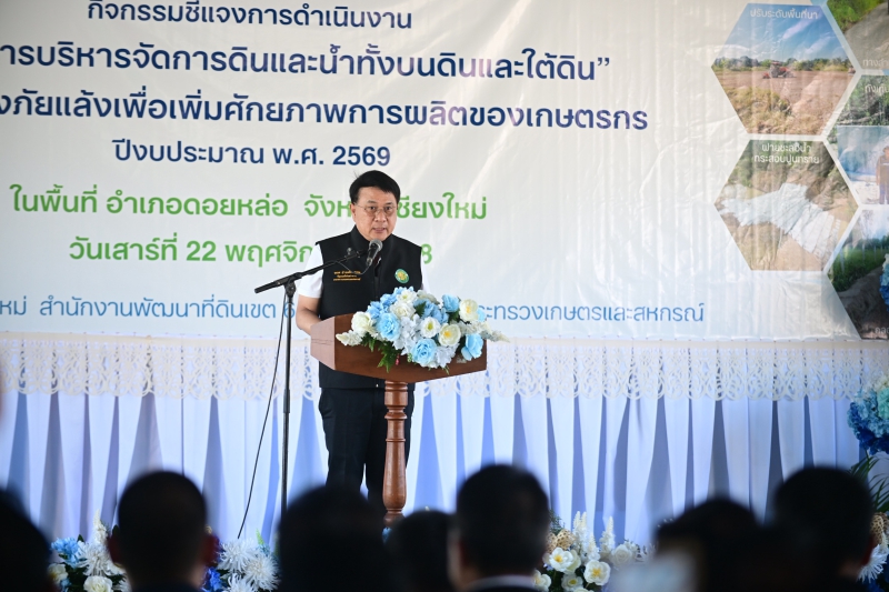 นายนเรศ ธำรงค์ทิพยคุณ รัฐมนตรีช่วยว่าการกระทรวงเกษตรและสหกรณ์ เปิดเผยภายหลังเป็นประธานเปิดกิจกรรมชี้แจงการดำเนินงาน “โครงการบริหารจัดการดินและน้ำทั้งบนดินและใต้ดินในพื้นที่เสี่ยงภัยแล้งเพื่อเพิ่มศักยภาพการผลิตของเกษตรกร ปีงบประมาณ พ.ศ. 2569” ณ อาคารศูนย์ส่งเสริมอาชีพเทศบาลตำบลยางคราม อำเภอดอยหล่อ จังหวัดเชียงใหม่ ว่า โครงการนี้ถือเป็นภารกิจสำคัญของกรมพัฒนาที่ดินในการแก้ไขปัญหาการขาดแคลนน้ำเพื่อการเกษตร และสร้างระบบบริหารจัดการดินและน้ำที่มีประสิทธิภาพ เพื่อให้เกษตรกรมีน้ำใช้เพียงพอ ตลอดจนยกระดับคุณภาพชีวิตและความมั่นคงด้านอาชีพอย่างยั่งยืน