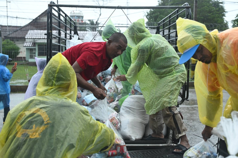 สำหรับสถานการณ์อุทกภัยในพื้นที่จังหวัดนราธิวาส มีฝนตกอย่างต่อเนื่องตั้งแต่วันที่ 21 พฤศจิกายน 2568 ทำให้ได้รับผลกระทบ 7 อำเภอ 29 ตำบล 36 ชุมชน 134 หมู่บ้าน 34,036 ครัวเรือน 106,861 คน เสียชีวิต 1 ราย โดยมีสิ่งก่อสร้างได้รับความเสียหาย ได้แก่ บ้านเรือน 2 หลัง โรงเรียน 5 แห่ง มัสยิด 1 แห่ง ถนนชำรุด 5 สาย สะพาน 1 แห่ง คอสะพาน 1 แห่ง ดินถล่ม/ดินสไลด์ 2 แห่ง และจุดอพยพเสียหาย 11 จุด (83 ครัวเรือน 297 คน)