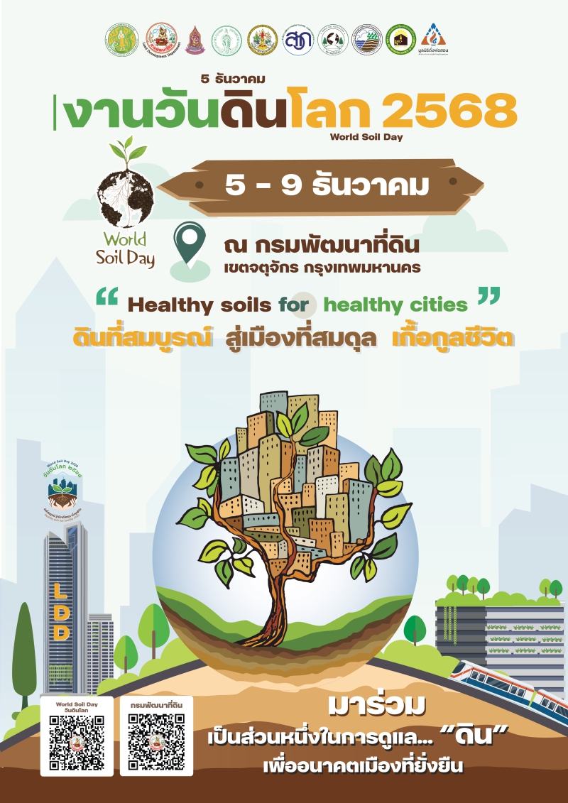 กระทรวงเกษตรและสหกรณ์ โดย กรมพัฒนาที่ดิน ขอเชิญร่วมงานวันดินโลก 2568 (World Soil Day 2025) ภายใต้หัวข้อ Healthy soils for healthy cities : ดินที่สมบูรณ์ สู่เมืองที่สมดุล เกื้อกูลชีวิต