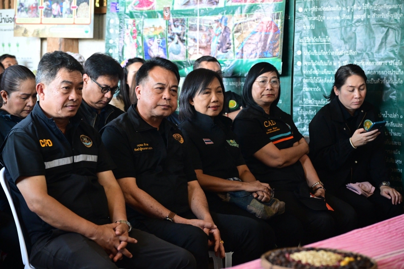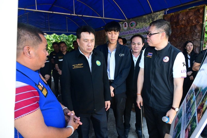 ต่อมา รมช.นเรศ นำคณะเดินทางต่อไปยัง ลานสนามกิจกรรมบ้านโป่งสมิต หมู่ 8 ตำบลแม่วิน อำเภอแม่วาง จังหวัดเชียงใหม่ เพื่อตรวจติดตามข้อสั่งการที่มอบหมายให้กรมพัฒนาที่ดิน โดยศูนย์ปฏิบัติการพัฒนาที่ดินโครงการหลวง (ศพล.) เข้าดำเนินการซ่อมแซมเส้นทางลำเลียงที่ได้รับผลกระทบจากภัยพิบัติ ณ บ้านโป่งสมิต หมู่ 8 บ้านหนองเต่า หมู่ 4 และบ้านห้วยตองหมู่ 10 ตำบลแม่วิน อำเภอแม่วาง จังหวัดเชียงใหม่ โดยที่บ้านโป่งสมิต มีระยะ 5.73 กิโลเมตร บ้านหนองเต่าและบ้านห้วยตอง มีระยะ 2.215 กิโลเมตร รวมทั้งสิ้น 7.945 กิโลเมตร ทั้งนี้ เจ้าหน้าที่ศูนย์พัฒนาโครงการหลวง เจ้าหน้าที่จากองค์การบริหารส่วนตำบลแม่วิน และภาคเอกชนที่ได้ร่วมสนับสนุน หินกรวดกลม บูรณาการเข้าร่วมตรวจสอบสภาพพื้นที่ และแนวทางในการดำเนินการซ่อมแซม เส้นทางลำเลียงภูเขาดังกล่าว จึงได้เกิดการบูรณาการเมื่อวันที่ 18 พฤศจิกายน - 7 ธันวาคม 2568 จนเกิดผลสำเร็จ ทำให้ชาวบ้านกลับมาใช้เส้นทางสัญจรได้ตามปกติ