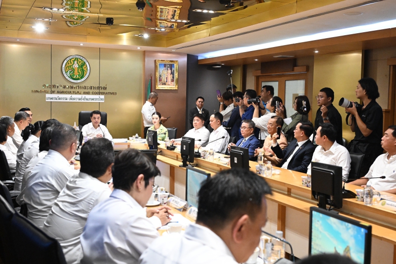 จากนั้นรัฐมนตรีว่าการกระทรวงเกษตรและสหกรณ์เป็นประธานการประชุมผู้บริหารระดับสูงของกระทรวงเกษตรและสหกรณ์ เพื่อมอบนโยบายและแนวทางการขับเคลื่อนการดำเนินงาน “เกษตรนวัตกรรม เพื่อความยั่งยืนเกษตรกรไทย” มุ่งขับเคลื่อนผ่านการบูรณาการระหว่างหน่วยงานภาครัฐและทุกภาคส่วนที่เกี่ยวข้อง เน้นการทำงานเชิงรุก ลดขั้นตอนที่ไม่จำเป็นลง เร่งการนำเทคโนโลยีดิจิทัลมาช่วยในการทำงานให้มีความคล่องตัวมากขึ้น พร้อมอำนวยความสะดวกให้กับเกษตรกรได้อย่างรวดเร็วและมีประสิทธิภาพ โดยมีนโยบายหลักที่จะเร่งผลักดัน 5 ด้าน คือ 1) ยกระดับการผลิตด้วยเทคโนโลยีและนวัตกรรม ปรับเปลี่ยนจากการทำเกษตรแบบดั้งเดิม มาเป็นการใช้เทคโนโลยีสมัยใหม่มากขึ้น โดยผลักดันการใช้ Big Data ร่วมกับเทคโนโลยีดิจิทัล และ AI มาบริหารจัดการการผลิตแบบแม่นยำ เพื่อลดต้นทุนการผลิต เพิ่มผลผลิตต่อหน่วย และเพิ่มคุณภาพมาตรฐานให้สูงขึ้น พร้อมทั้งสนับสนุนให้มีผู้ให้บริการทางการเกษตร หรือ Agriculture Service Provider ในระดับชุมชน เพื่อให้เกษตรกรสามารถเข้าถึงเครื่องจักรกลทางการเกษตรและใช้ประโยชน์จากเทคโนโลยีที่เท่าทันการเปลี่ยนแปลงสภาพภูมิอากาศได้อย่างทั่วถึง ในราคาที่เหมาะสมและเป็นธรรม