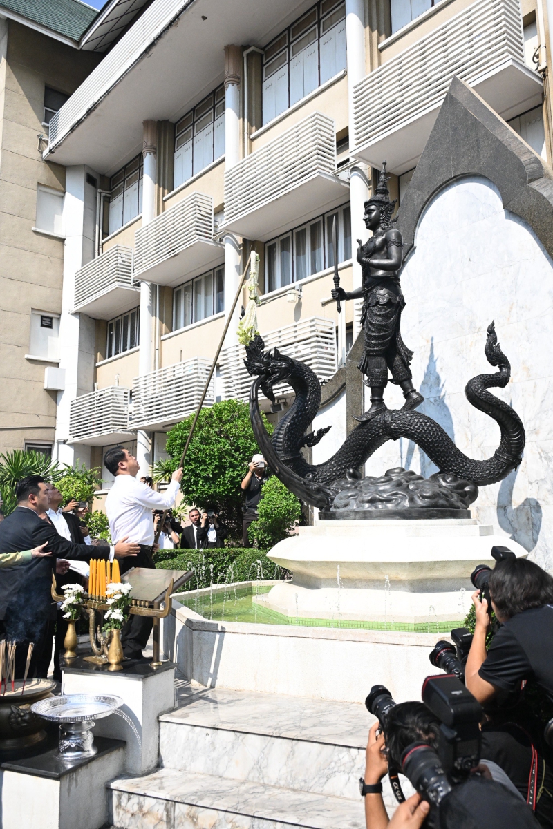 นายสุริยะ จึงรุ่งเรืองกิจ รัฐมนตรีว่าการกระทรวงเกษตรและสหกรณ์ พร้อมด้วย นางสาวปิยะรัฐชย์ ติยะไพรัช รัฐมนตรีช่วยว่าการกระทรวงเกษตรและสหกรณ์ และนายวัชระพล ขาวขำ รัฐมนตรีช่วยว่าการกระทรวงเกษตรและสหกรณ์ เดินทางเข้าสักการะสิ่งศักดิ์สิทธิ์ประจำกระทรวงเกษตรและสหกรณ์ โดยถือฤกษ์ในเวลา 09.00 น. เข้าสักการะห้องพระพิรุณ 130 (ห้องพระ อาคาร 1 ชั้น 4) สักการะศาลพระภูมิชัยมงคล สักการะศาลท้าวเวสสุวรรณ สักการะศาลตา-ยาย สักการะองค์พระพิรุณทรงนาค (หน้าอาคาร 1) และสักการะองค์พระพิรุณทรงนาค (ห้องพิพิธภัณฑ์) ตามลำดับ พร้อมถ่ายภาพร่วมกับผู้บริหารกระทรวงเกษตรและสหกรณ์ บริเวณหน้าอาคาร 1 กระทรวงเกษตรและสหกรณ์