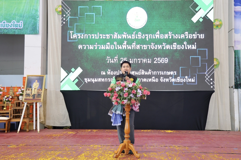 ร้อยเอก ธรรมนัส กล่าวว่า สำหรับโครงการประชาสัมพันธ์เชิงรุกเพื่อสร้างเครือข่ายความร่วมมือในพื้นที่ เป็นโครงการที่มีการขับเคลื่อนในทุกจังหวัดทั่วประเทศ เพื่อสื่อสารข้อมูลให้เข้าถึงเกษตรกร เสริมความเข้าใจที่ถูกต้อง และสร้างเครือข่ายความร่วมมือแก้ปัญหาเกษตรกรรมในพื้นที่ ซึ่งในวันนี้กระทรวงเกษตรและสหกรณ์ ร่วมกับ สำนักงานกองทุนฟื้นฟูและพัฒนาเกษตรกร ได้มีการขยายผลการจัดทำโครงการฯ มายังพื้นที่จังหวัดเชียงใหม่ เพื่ออำนวยความสะดวกให้แก่พี่น้องเกษตรกร รวมถึงเพื่อสร้างโอกาสทางการเข้าถึงข้อมูลและแลกเปลี่ยนองค์ความรู้ เกี่ยวกับแนวทางการขอรับการสนับสนุนจากหน่วยงานต่าง ๆ ที่เกี่ยวข้อง ระหว่างเจ้าหน้าที่และพี่น้องเกษตรกรในพื้นที่