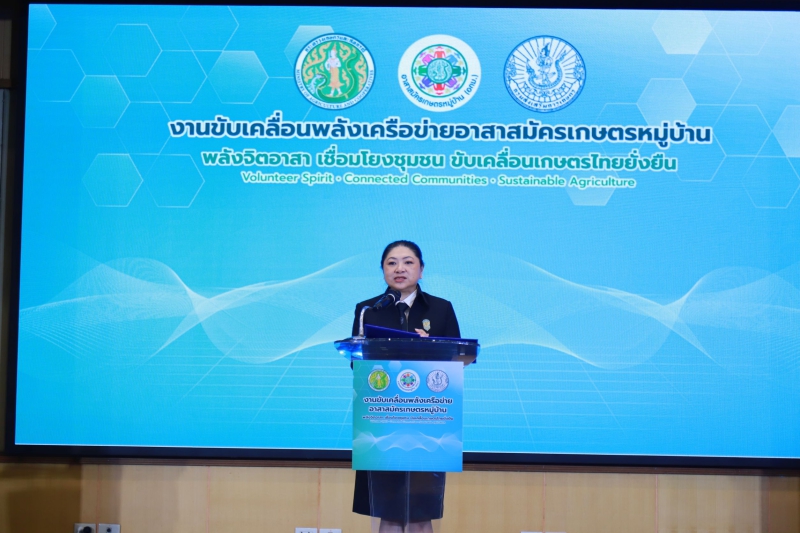 ด้าน นางอัญชลี สุวจิตตานนท์ อธิบดีกรมส่งเสริมการเกษตร กล่าวเพิ่มเติมว่า การจัดงานขับเคลื่อนพลังเครือข่ายอาสาสมัครเกษตรหมู่บ้านในครั้งนี้ ยังเป็นเวทีสำคัญในการขับเคลื่อนการปรับเปลี่ยนกระบวนทัศน์ของอาสาสมัครเกษตรหมู่บ้าน จากเดิมที่ทำหน้าที่ถ่ายทอดนโยบาย สู่การเป็น PBL Coach (Problem-based Learning Coach) หรือผู้นำการเปลี่ยนแปลงในพื้นที่ โดยเริ่มต้นจากปัญหาจริงของชุมชน ให้ อกม. ได้พัฒนาทักษะการคิดเชิงวิเคราะห์ (Analytical Thinking) การแสวงหาความรู้ด้วยตนเอง และการออกแบบแนวทางแก้ไขที่เหมาะสมกับบริบทของแต่ละพื้นที่ นอกจากนี้ ยังเน้นการเสริมสร้างความรู้ด้านการจัดการความรู้ทางการเกษตร (Knowledge Management) เพื่อให้เกิดกระบวนการแก้ไขปัญหาอย่างเป็นระบบ ถ่ายทอดองค์ความรู้ที่เหมาะสม และสร้างความเข้มแข็งให้กับชุมชนเกษตรในระยะยาว
