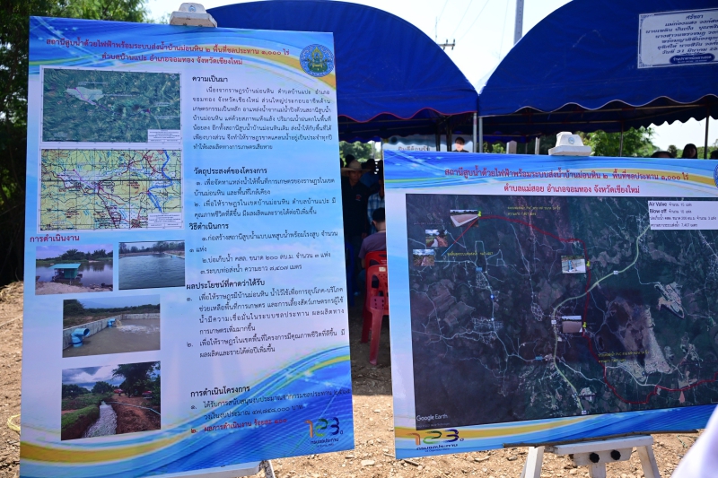 นายนเรศ ธำรงค์ทิพยคุณ รัฐมนตรีช่วยว่าการกระทรวงเกษตรและสหกรณ์ เป็นประธานเปิดโครงการสถานีสูบน้ำด้วยไฟฟ้าพร้อมระบบส่งน้ำ จำนวน 2 แห่ง ได้แก่ บ้านข่วงเปาใต้ 2 และบ้านม่อนหิน 2 ตำบลบ้านแปะ อำเภอจอมทอง จังหวัดเชียงใหม่ เพื่อแก้ไขปัญหาการขาดแคลนน้ำและสนับสนุนภาคการเกษตรให้มีน้ำใช้อย่างเพียงพอ ส่งผลให้เกษตรกรได้รับประโยชน์รวม 1,224 คน 377 ครัวเรือน มีน้ำใช้เพื่อการเกษตรและการอุปโภคบริโภคอย่างเพียงพอ ช่วยเพิ่มผลผลิต ลดความเสี่ยงจากภัยแล้ง และยกระดับคุณภาพชีวิตของประชาชนในพื้นที่อย่างยั่งยืน โดยโครงการบ้านข่วงเปาใต้ 2 ได้รับงบประมาณในปี พ.ศ. 2567 จำนวน 58,280,000 บาท ครอบคลุมพื้นที่ชลประทานประมาณ 1,800 ไร่ ขณะที่โครงการบ้านม่อนหิน 2 ได้รับงบประมาณในปี พ.ศ. 2565 จำนวน 47,848,000 บาท ครอบคลุมพื้นที่ 1,000 ไร่ ดำเนินการก่อสร้างสถานีสูบน้ำแบบแพสูบน้ำพร้อมโรงสูบ จำนวน 1 แห่ง ก่อสร้างบ่อเก็บน้ำคอนกรีตเสริมเหล็ก ความจุ 200 ลูกบาศก์เมตร จำนวน 3 แห่ง และวางท่อส่งน้ำความยาว 7,407 เมตร ปัจจุบันทั้งสองโครงการแล้วเสร็จ ส่งผลให้เกษตรกรได้รับประโยชน์รวม 1,224 คน 377 ครัวเรือน มีน้ำใช้เพื่อการเกษตรและการอุปโภคบริโภคอย่างเพียงพอ ช่วยเพิ่มผลผลิต ลดความเสี่ยงจากภัยแล้ง และยกระดับคุณภาพชีวิตของประชาชนในพื้นที่อย่างยั่งยืน