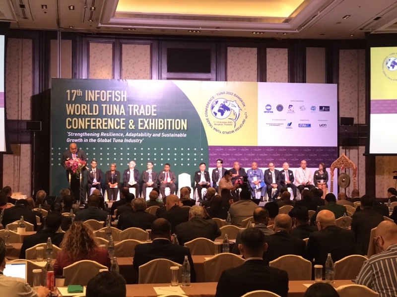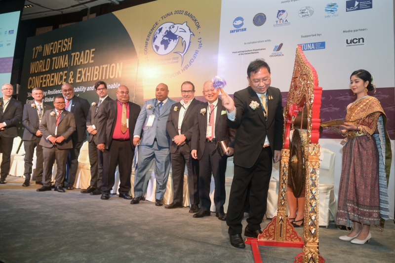 ประเทศไทย โดยกรมประมง กระทรวงเกษตรและสหกรณ์ ร่วมกับ องค์การระหว่างประเทศด้านข่าวสาร การตลาดและบริการ แนะแนวด้านเทคนิคของสินค้าสัตว์น้ำแห่งเอเชียและแปซิฟิก (INFOFISH) สมาคมอุตสาหกรรมทูน่าไทย (TTIA) Indian Ocean Tuna Commission (IOTC) Inter - American Tropical Tuna Commission (IATC) และ Western and Central Pacific Fisheries Commission (WCPFC) เป็นเจ้าภาพจัดการประชุมและจัดแสดงสินค้า “ทูน่าโลก ครั้งที่ 17” (The 17th INFOFISH World Tuna Trade Conference and Exhibition) หรือ “TUNA 2022” ระหว่างวันที่ 11-13 ตุลาคม 2565 ณ โรงแรมแชงกรี-ลา กรุงเทพฯ ภายใต้หัวข้อ “การเสริมสร้างความยืดหยุ่น การปรับตัว และการเติบโตอย่างยั่งยืนในอุตสาหกรรมปลาทูน่าโลก” เพื่อให้ผู้เกี่ยวข้องจากภาคอุตสาหกรรมปลาทูน่าทั่วโลกได้แลกเปลี่ยนข้อมูลข่าวสาร และแบ่งปันองค์ความรู้ต่าง ๆ ตลอดจนเป็นการเปิดโอกาสการเจรจาทางธุรกิจ เพื่อเสริมสร้างความยั่งยืนของอุตสาหกรรมปลาทูน่า ส่งเสริมการทำประมงอย่างมีความรับผิดชอบและต่อต้านการทำประมงผิดกฎหมายในระดับภูมิภาค