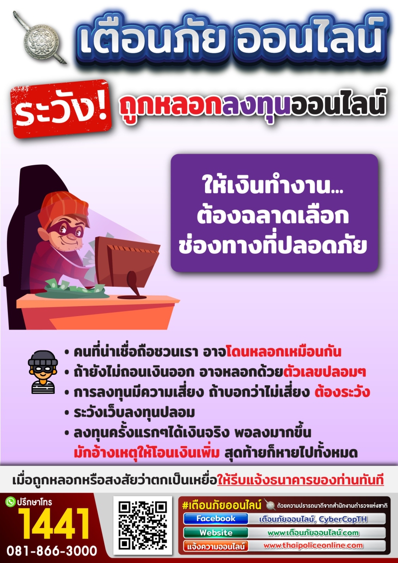 ระวัง!! ถูกหลอกลงทุนออนไลน์