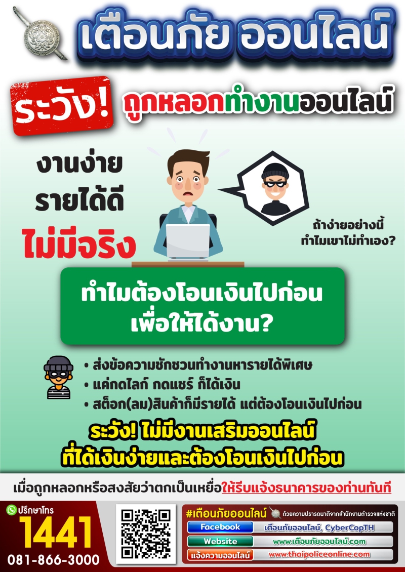 ระวัง!! ถูกหลอกทำงานออนไลน์