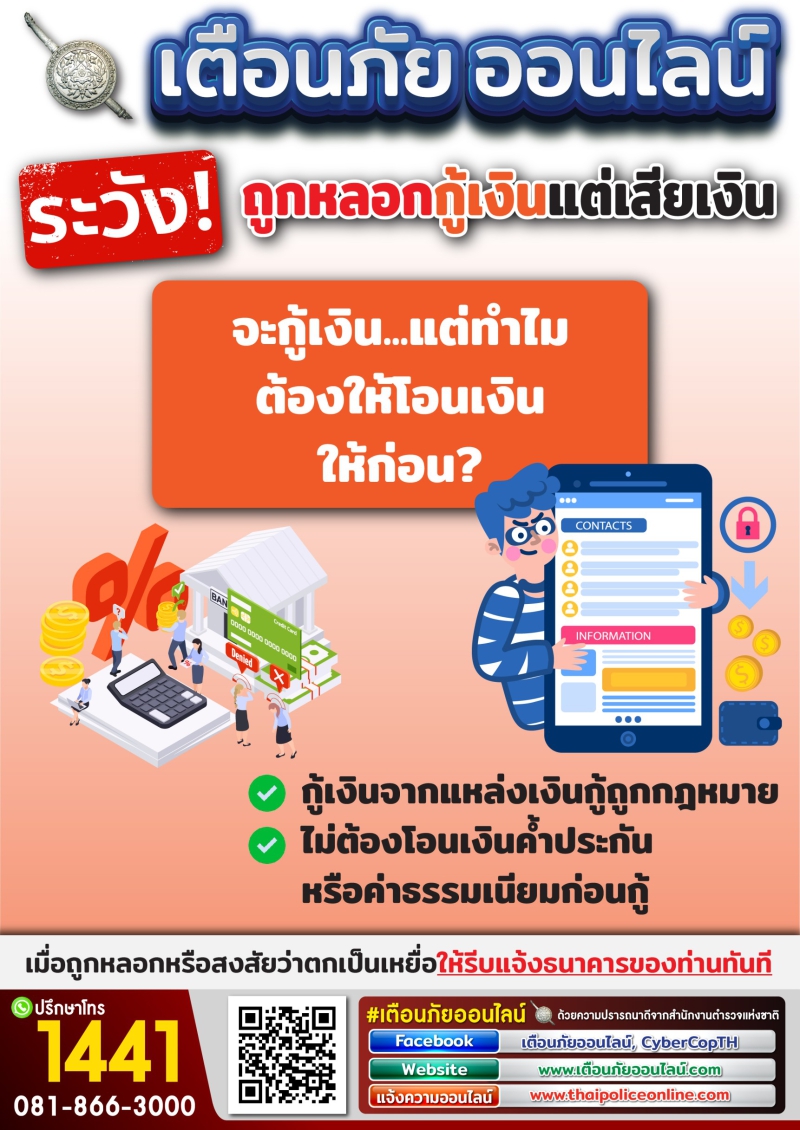 ระวัง!! ถูกหลอกกู้เงินแต่เสียเงิน
